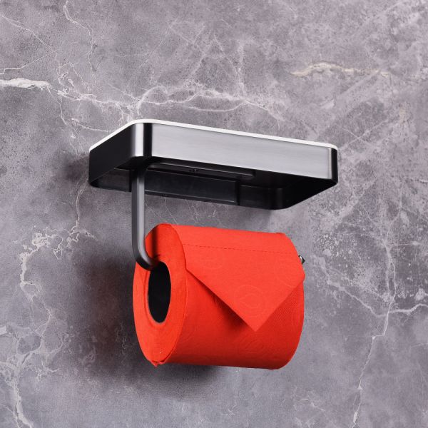 Бумагодержатель ABBER Westen AA1730B с полкой для телефона чёрный матовый