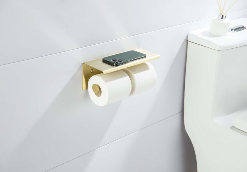 Бумагодержатель двойной с полкой Aquatek Оберон AQ4909BG шлифованное золото купить