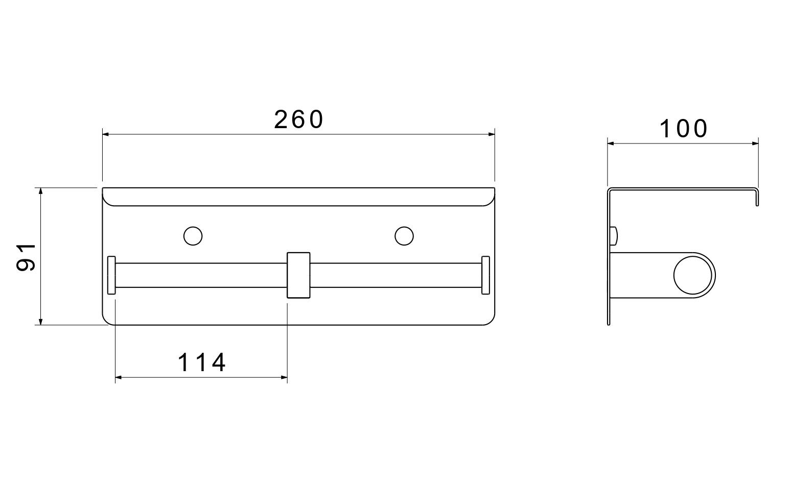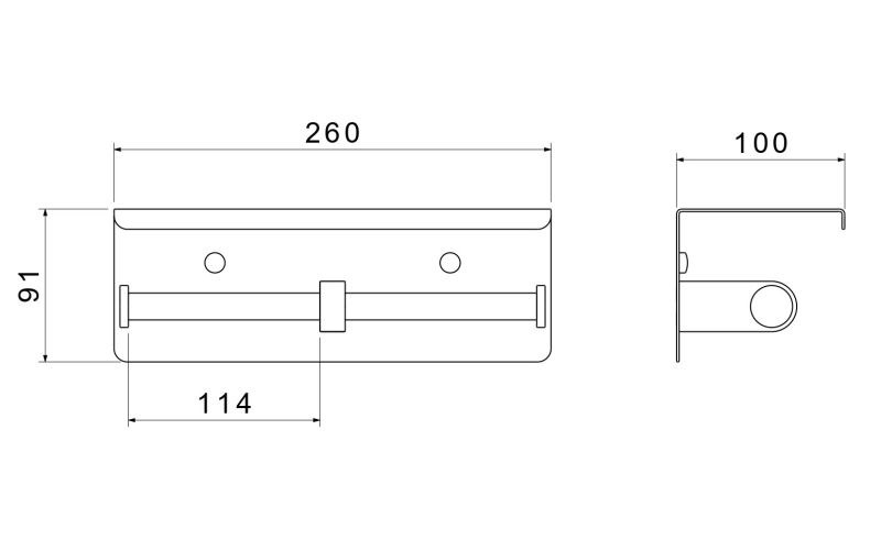 Общий размер (мм): 260*101*91Основной материал: нержавеющая стальМетод крепления: шурупыМонтаж: на стенуНазначение: аксессуарыТип продукта: держатель для туалетной бумагиПолочка для телефона: естьГарантия (лет): 5