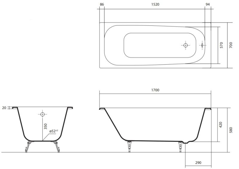 Чугунная ванна Aquatek Сигма AQ8870F-00 170x70см белый купить