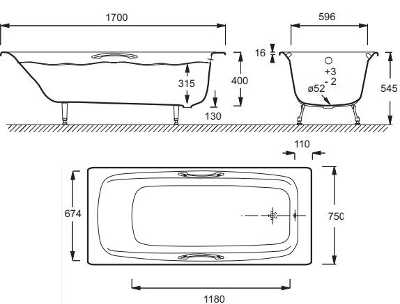 Чугунная ванна Jacob Delafon DIAPASON E2926-00 с отверстиями для ручек 170x75