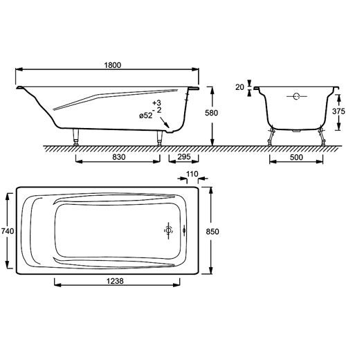 Чугунная ванна Jacob Delafon REPOS E2904-S-00 180 x 85