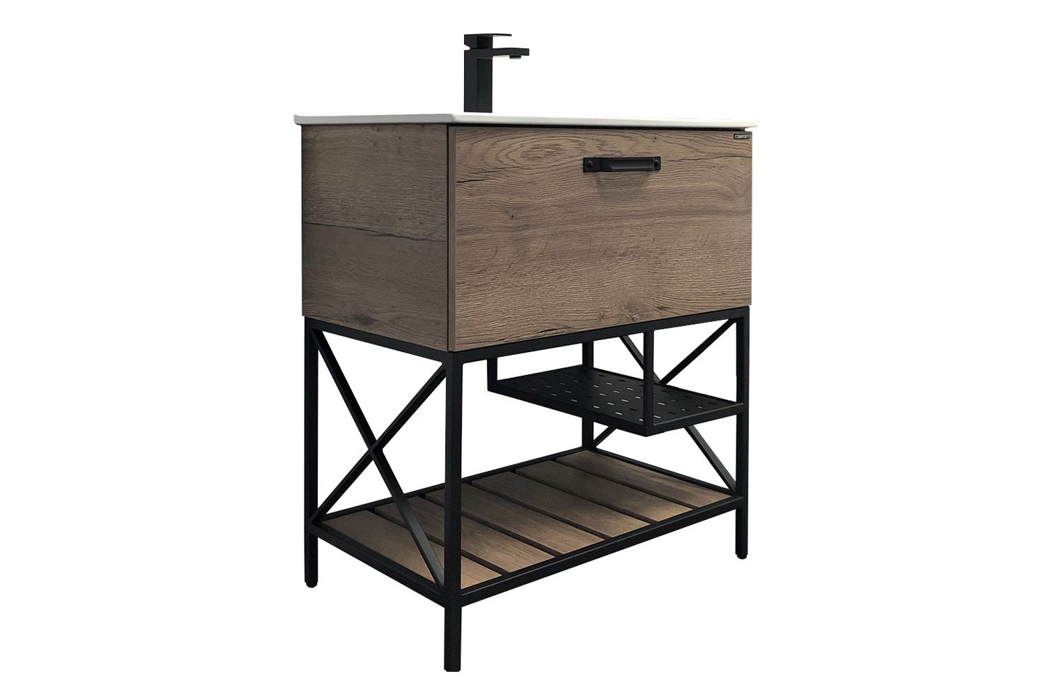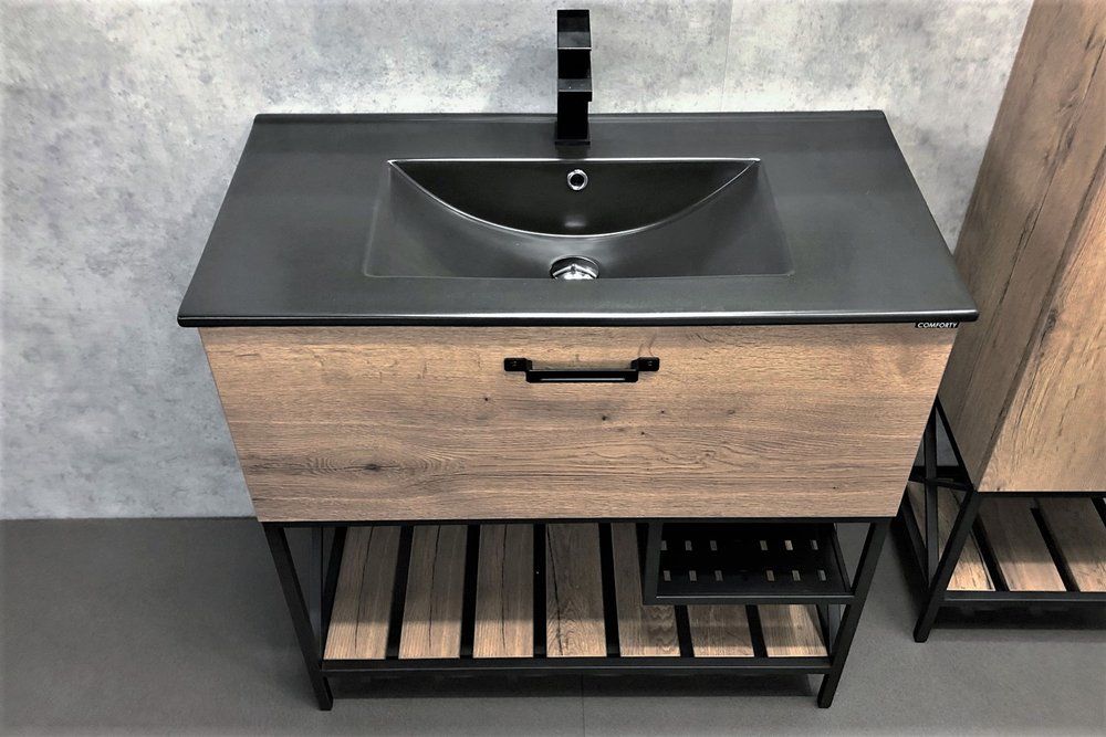 COMFORTY. Тумба-умывальник "Бредфорд-90" дуб темный с белой раковиной COMFORTY 90E