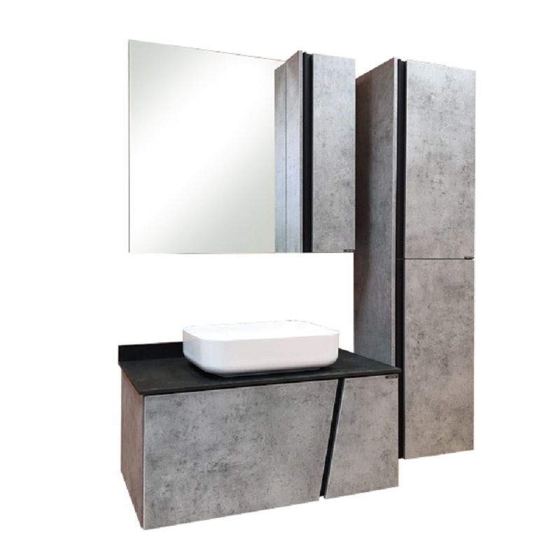 COMFORTY Тумба-умывальник Эдинбург-90 бетон светлый с черной столешницей