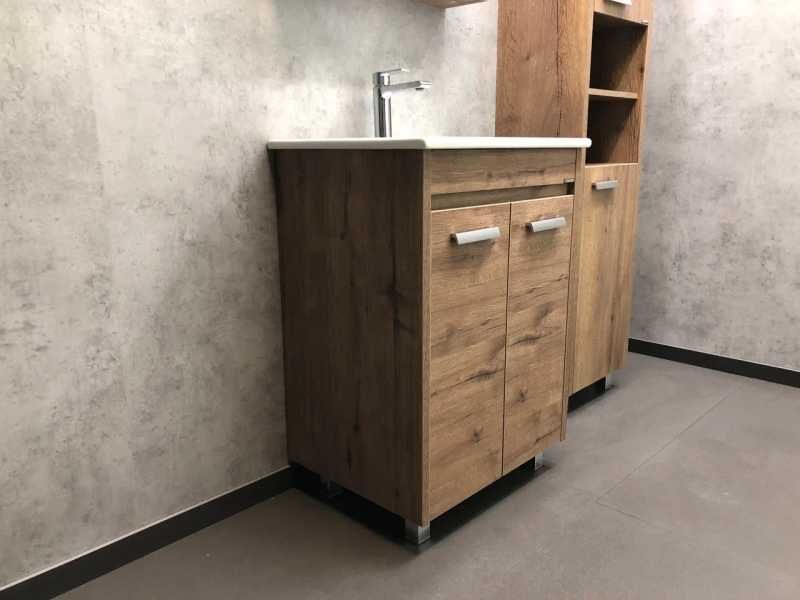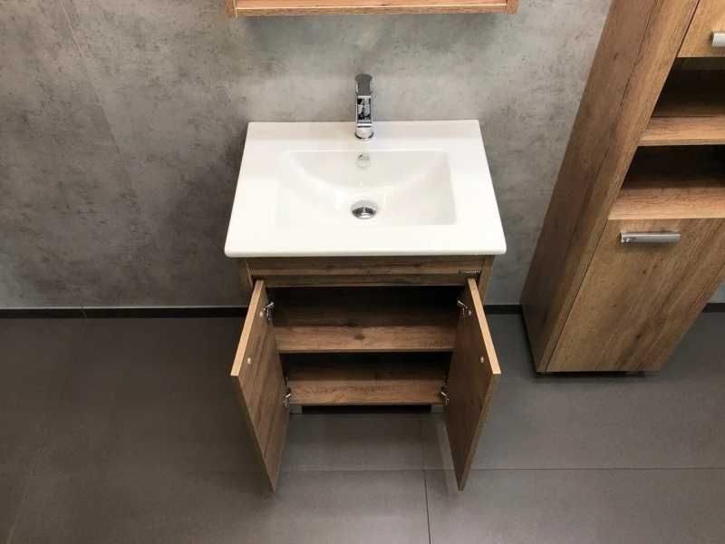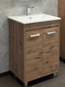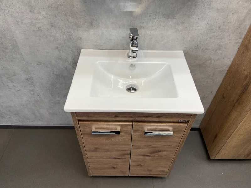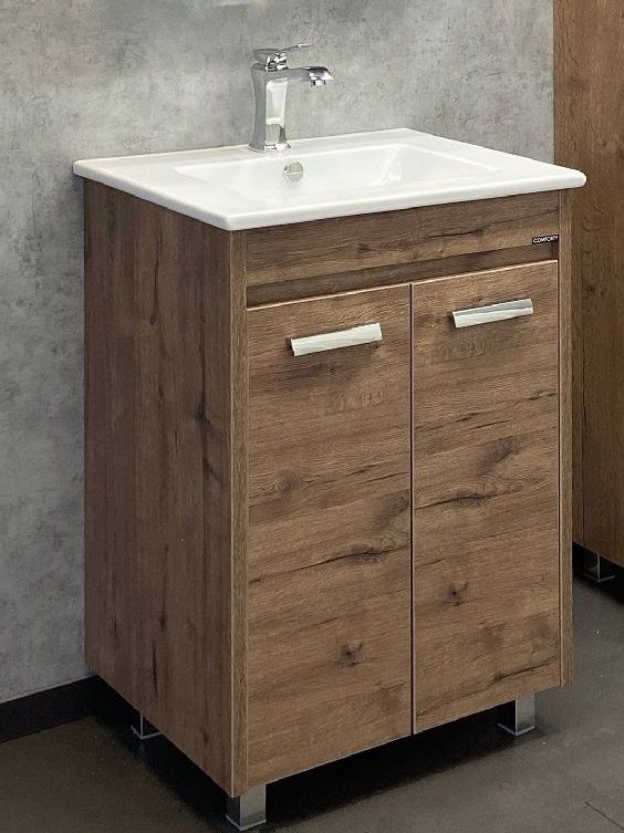 Тумба с раковиной Comforty Марио 60 см, 00-00004155, напольная, 2 двери, дуб темныйТумба с раковиной