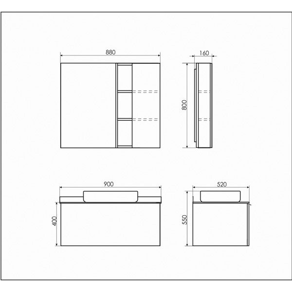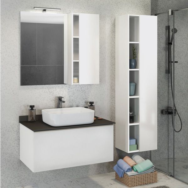 Название: Зеркало шкаф Артикул: Милан 90 Варианты цвета корпуса: Белый глянец Материал корпуса: влагостойкое ЛДСП Цвет фасада: Белый глянец Материал фасада: МДФ Габариты (ШхВхГ): 880*800*160 мм Зеркало-шкаф с одной створкой и пространствами для открытого хранения. Створка оснащена системой плавного закрывания. Две горизонтальные полки продолжаются и за створкой. Фасад покрыт белой глянцевой эмалью