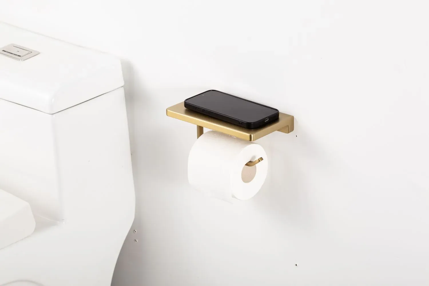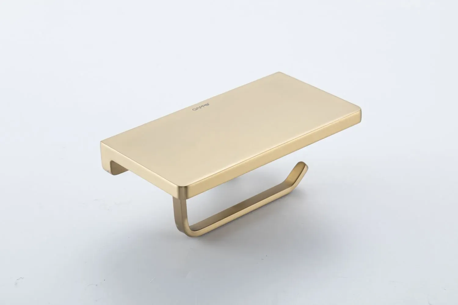 Держатель для туалетной бумаги Gappo G30803-3 с полочкой золотой сатин