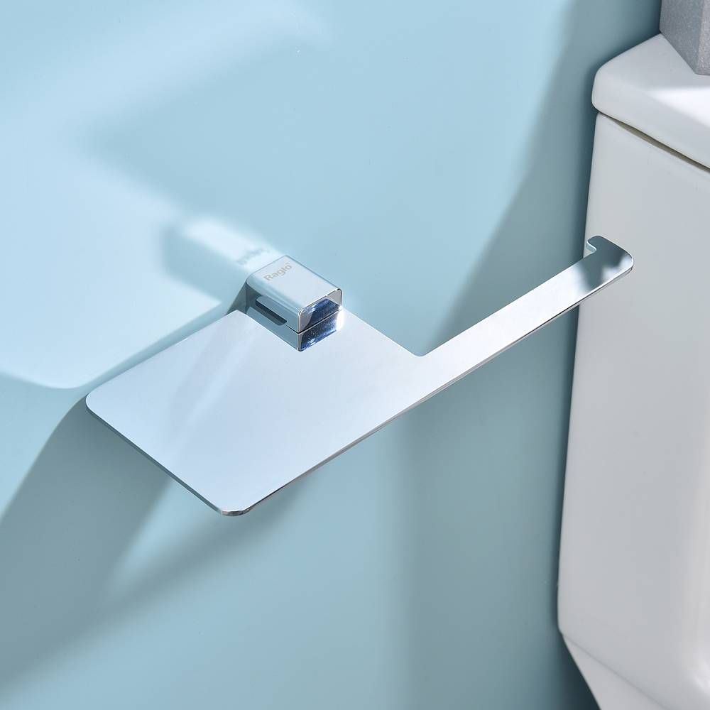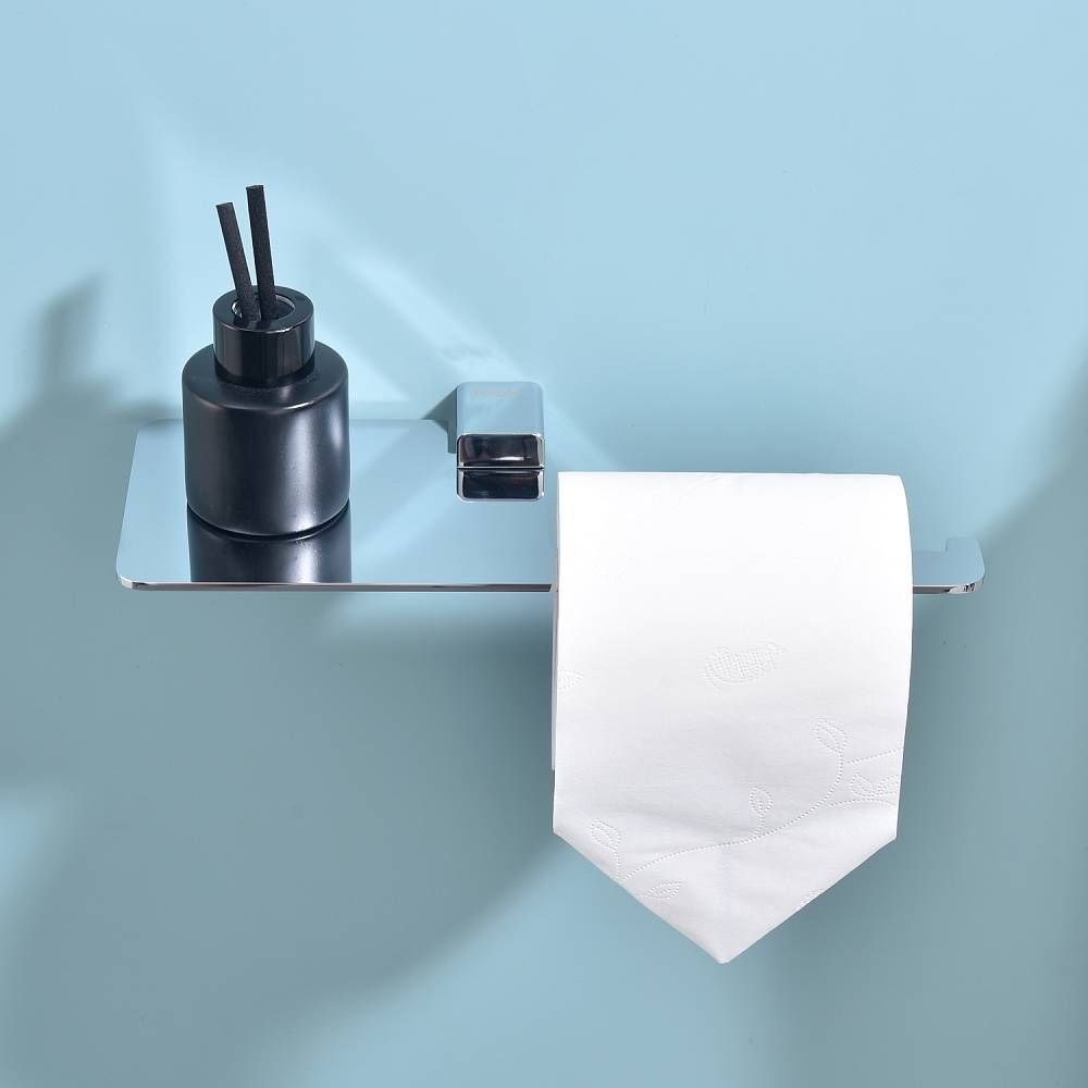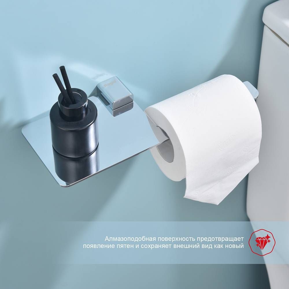 Raglo R301.03 Бумагодержатель с полочкой под телефон. Форма квадратная, цвет - хром, глянцевое покрытие. Комплект крепежа есть.