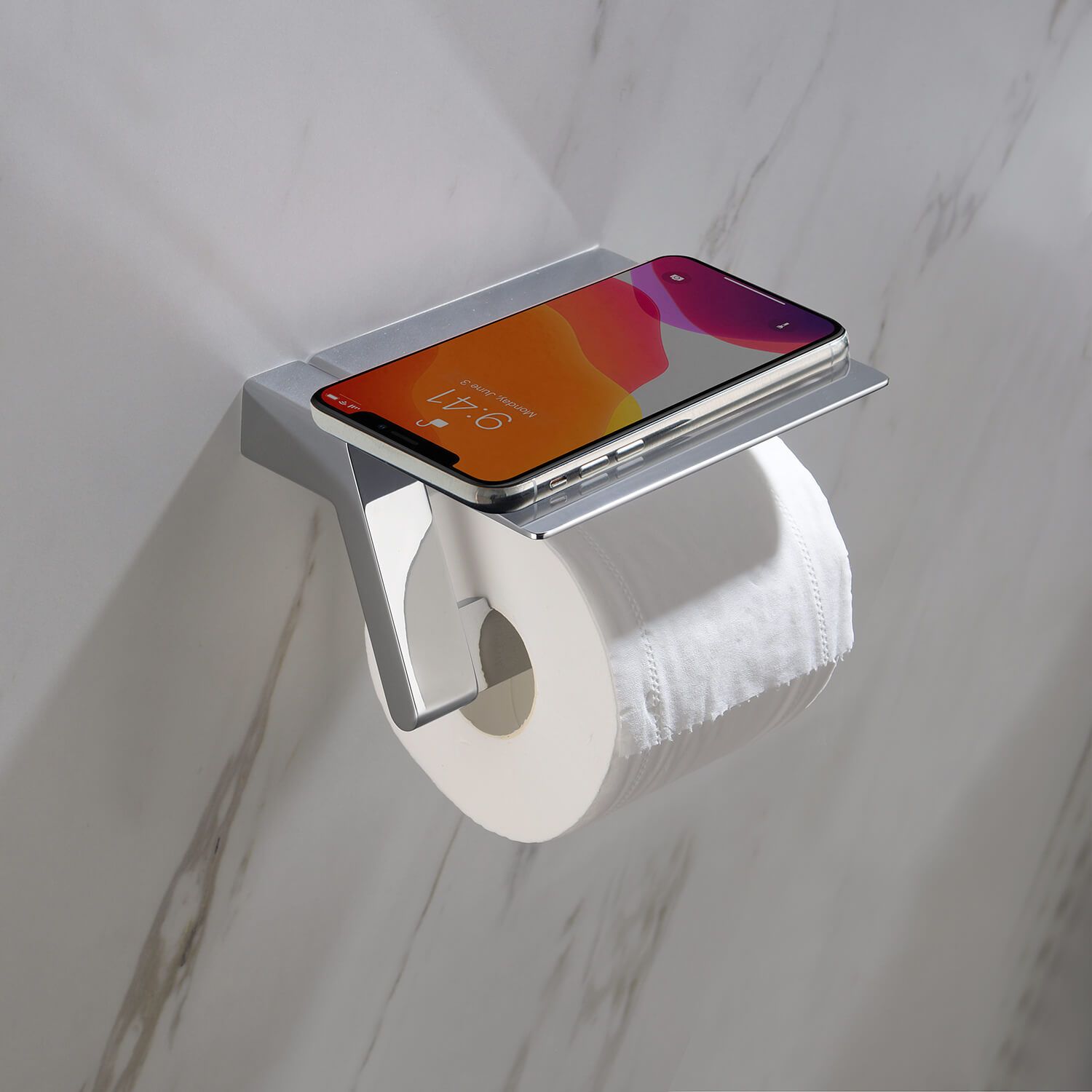 Красивая геометрия, виртуозность исполнения, хромированное покрытие будет отлично смотреться в интерьере хай-тек, loft или минимализм. Размещение сразу двух необходимых предметов на одном девайсе выглядит удобно и очень логично.Держатель туалетной бумаги с полочкой представляет собой прочную настенную конструкцию. Модель эргономична – продумана каждая деталь. Например, рулон туалетной бумаги не срывается с держателя, если вы случайно приложили большее усилие и чуть сильнее потянули за край.