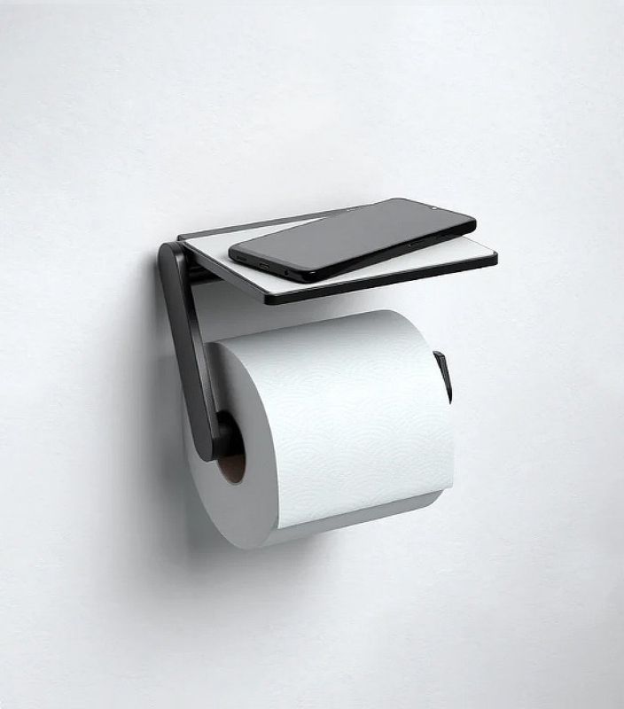 Держатель туалетной бумаги Keuco Plan 14973 370000 с полкой Черный матовый купить