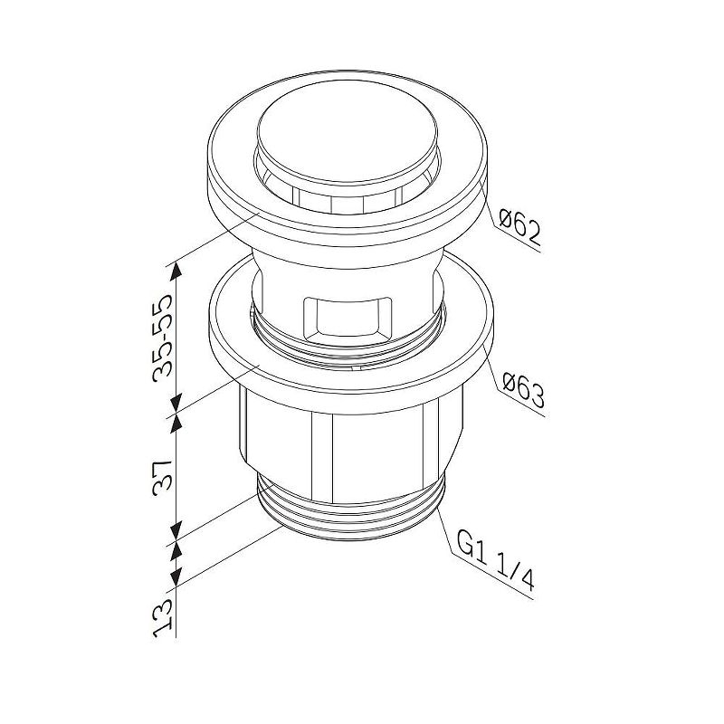 С отверстием для подключения перелива позволяющего выпускать воду из раковины при ее переполнении через отверстие в нижней части перелива. Система клик-клак управляется нажатием на пробку слива. Покрытие устойчиво к коррозии, появлению царапин, сколов и потускнению. Круглая заглушка в цвете золото. Подключение к сифону: G1 1/4