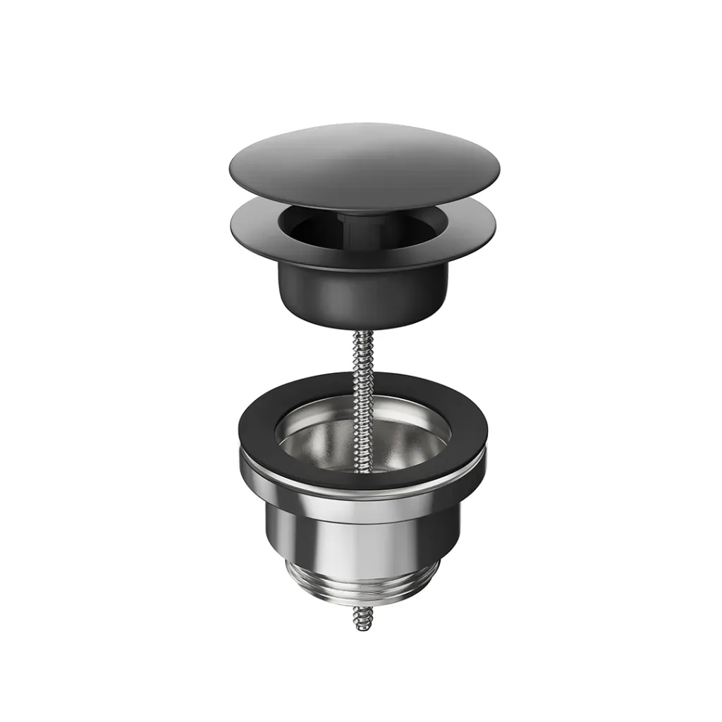 Донный клапан с системой "клик-клак" 1"1/4. Минимальная высоты 15 мм, максимальная - 67 мм. Внимание: для чистки черных и цветных изделий можно применять только мягкую губку и мыльный раствор. Использование моющих и абразивных средств запрещено.