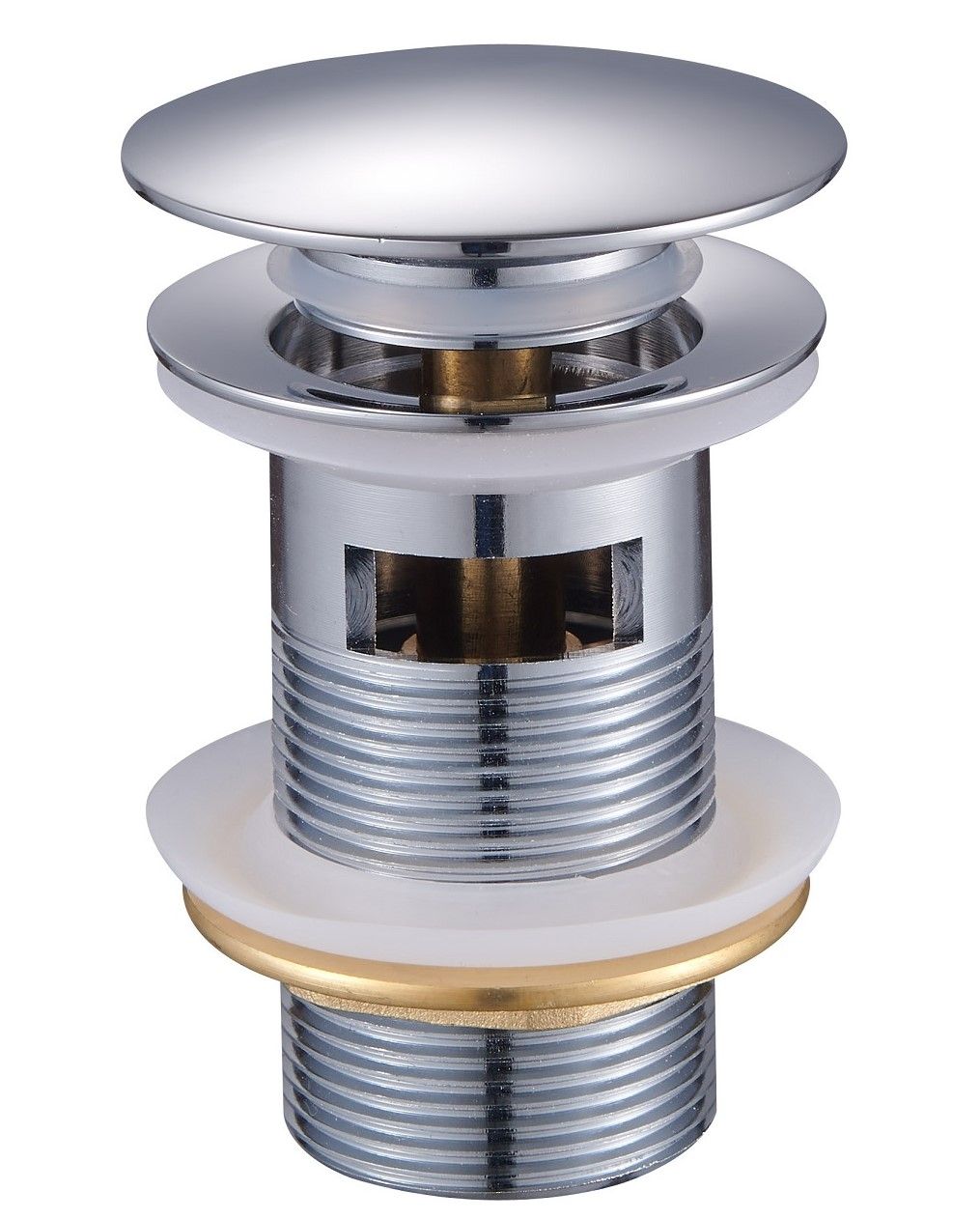 Донный клапан R600.03 с переливом хорошо впишется в сочетании с открытыми сифонами. Плотно прилегает к сливу и мешает поступлению воды и неприятных запахов из канализации. Сделан из латуни. Не будет ржаветь и не потеряет блеск со временем. Клапан автоматический, чтобы перекрыть отверстие достаточно легкого нажатия на поверхность корпуса. В таком механизме пробка не потеряется. Конструкция качественная и надежная. Универсальная конструкция для раковин с переливом и без перелива.