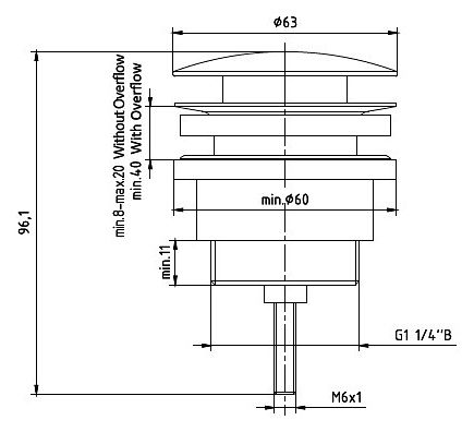 - Диаметр слива: G 1 1/4"