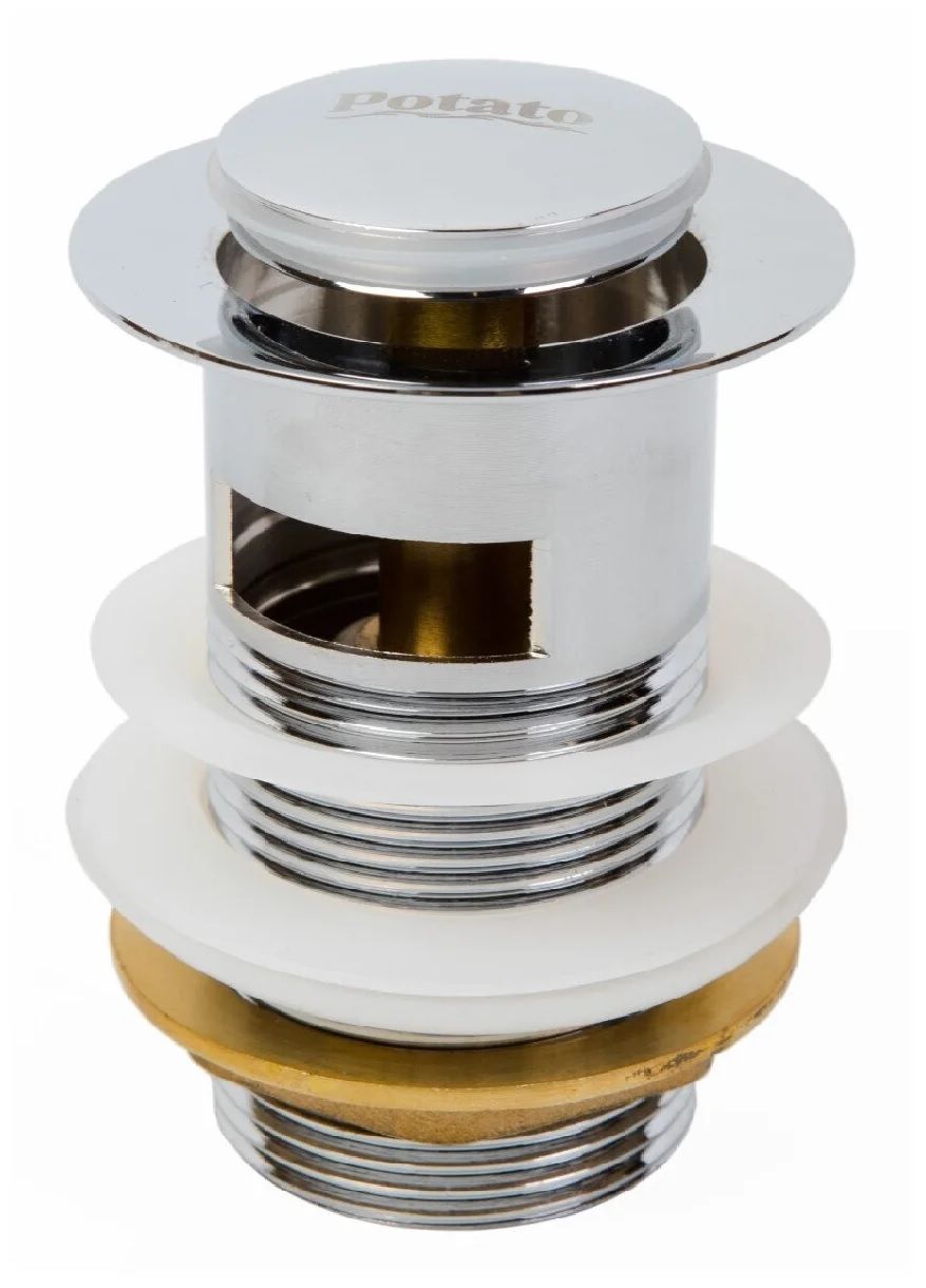 Управление осуществляется нажатием. Клапан выполнен в цвете глянцевый хром - напыление долговечно, устойчиво к коррозии, перепадам температур и механическим воздействиям.