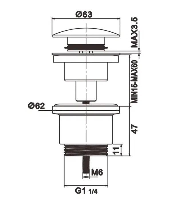 Донный клапан Rose RS31H, черный.