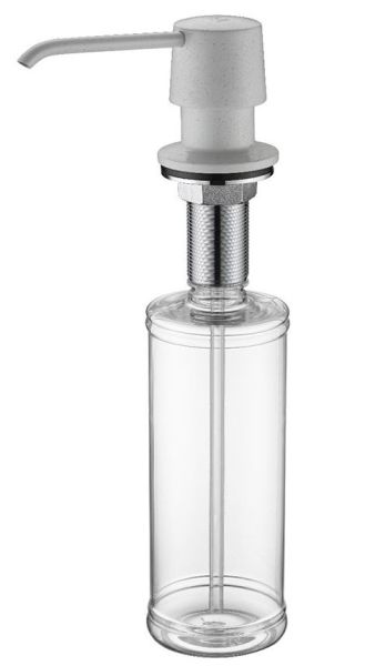 Дозатор для кухни и ванной, артикул D001-331Дозатор для кухни или ванной, встраиваемый, объемом 350 мл, матовая поверхность, изготовлен из латуни и пластика.