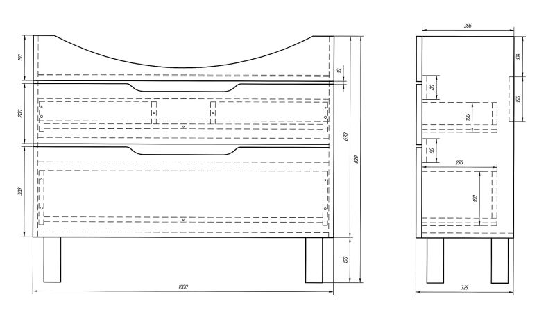 Напольная классическая коллекция в 4-х размерах с 2-мя выдвижными ящиками. Верхний ящик с органайзером Во всех предметах используются механизмы с доводчиками Hettich. Хромированные ножки. В комплект можно докупить зеркальные шкафы, пенал, полупенал.