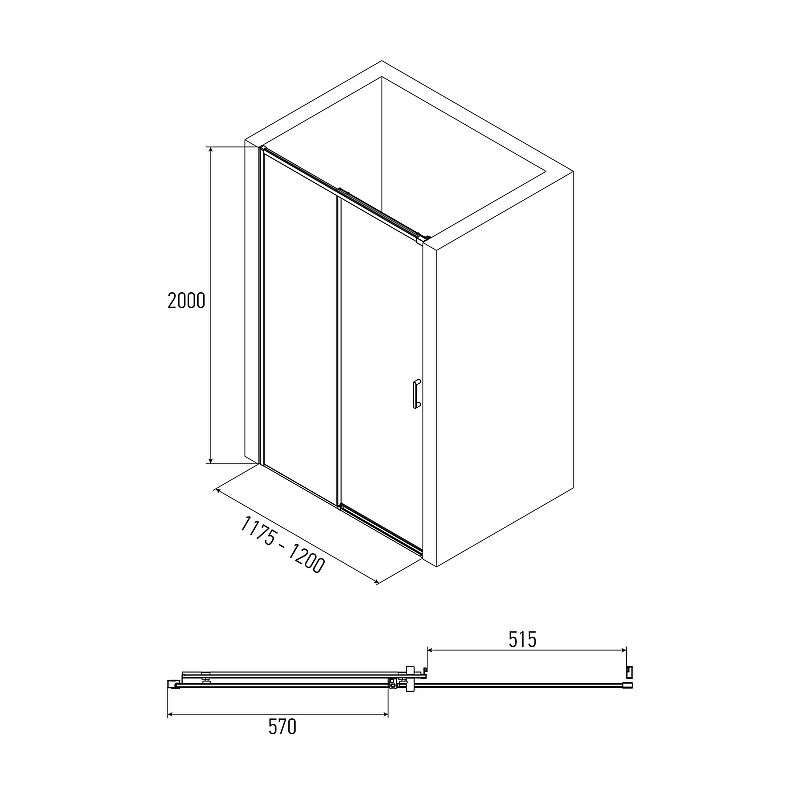 • Дверь может быть дополнена боковой стенкой (SG) для преобразования в душевой уголок.