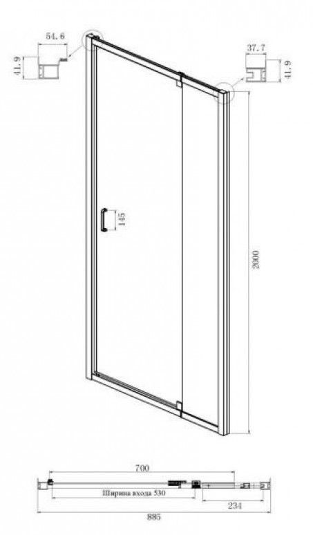 - Ширина входа: 690 мм.