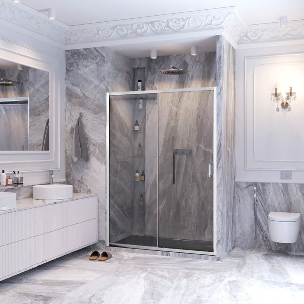 Душевая дверь Ambassador выполнена в современном стиле и предназначена для использования в ванных комнатах. Модель оснащена неподвижной частью и раздвижной дверью. Покрытие Easy Clean защищает поверхность и избавляет от известкового налета. Полотно двери выполнено из закаленного стекла, верхние ролики - из нержавеющей стали, профиль - из анодированного алюминия, который отличается устойчивостью к коррозии, долговечностью и износостойкостью.