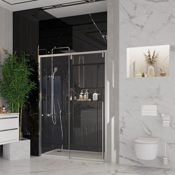 Душевая дверь Ambassador выполнена в современном стиле и предназначена для использования в ванных комнатах. Модель оснащена неподвижной частью и раздвижной дверью. Покрытие Easy Clean защищает поверхность и избавляет от известкового налета. Полотно двери выполнено из закаленного стекла, верхние ролики - из нержавеющей стали, профиль - из анодированного алюминия, который отличается устойчивостью к коррозии, долговечностью и износостойкостью.