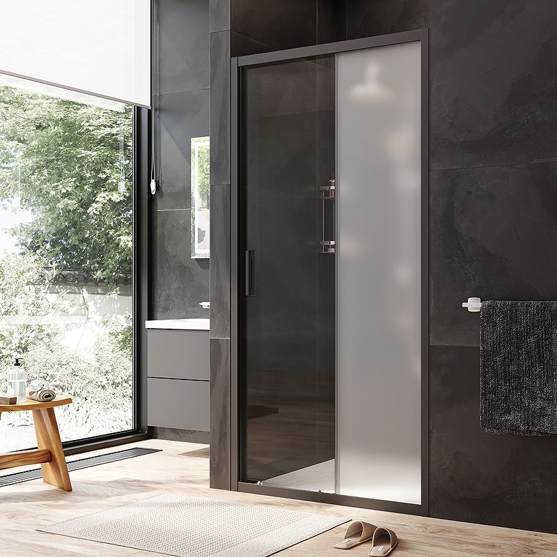 Душевая дверь AM.PM Gem Solo 100 W90G-100-1-195BM профиль Черный матовый стекло матовое-прозрачноеДушевая дверь отличается практичностью и функциональностью. Изделие произведено из ударопрочного закаленного стекла, которое надежно фиксируется в нержавеющий алюминиевый профиль при помощи системы скрытых креплений. Ширина конструкции может быть увеличена путем регулирования каркаса на 20 мм, что решает проблему неровных стен. Безупречную и плавную работу двери обеспечивают двойные металлические ролики на металлоподшипниках. Конструкция максимально герметична и предотвращает попадание воды на пол ванной комнаты.