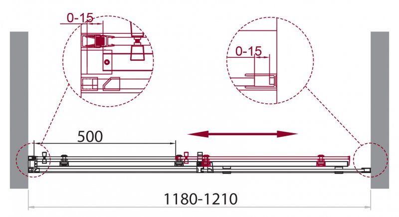 Регулировка ширины: предусмотрена за счет боковых профилей