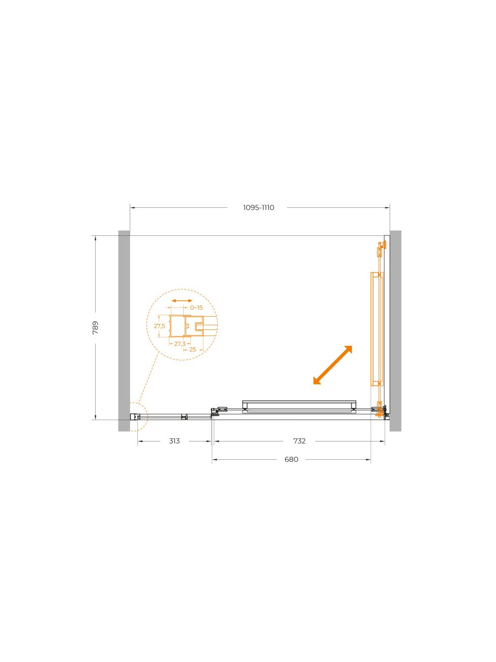 Душевая дверь CEZARES LUX-B-FS-11-110-C-GM оружейная сталь
