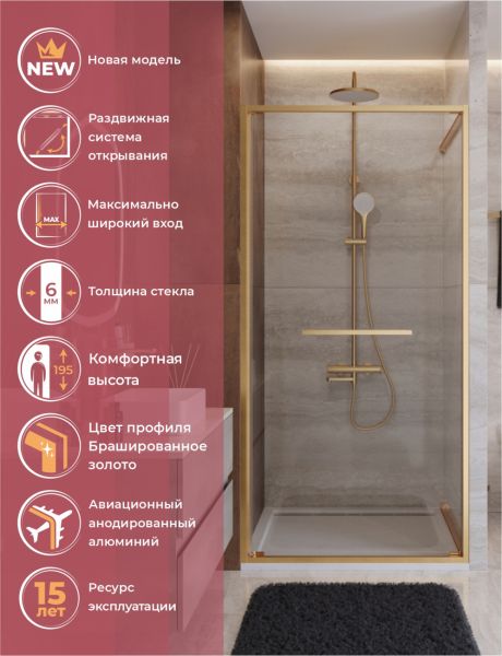 Душевая дверь CEZARES LUX-B-FS-11-120-C-BORO Брашированное золото купить