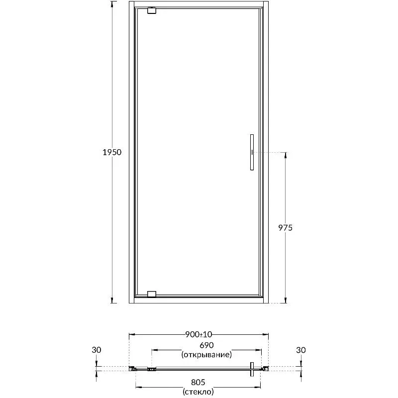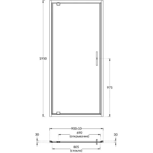 Преимущества распашной двери VETRO: — Лаконичный современный дизайн: алюминиевый профиль, скрытый крепёж, стильная ручка с обеих сторон двери — Регулировка проема 20 мм (10 мм с каждой стороны) — Закаленное безопасное стекло 6 мм, водоотталкивающее покрытие «easy clean» — Правое или левое открывание, лёгкая установка.