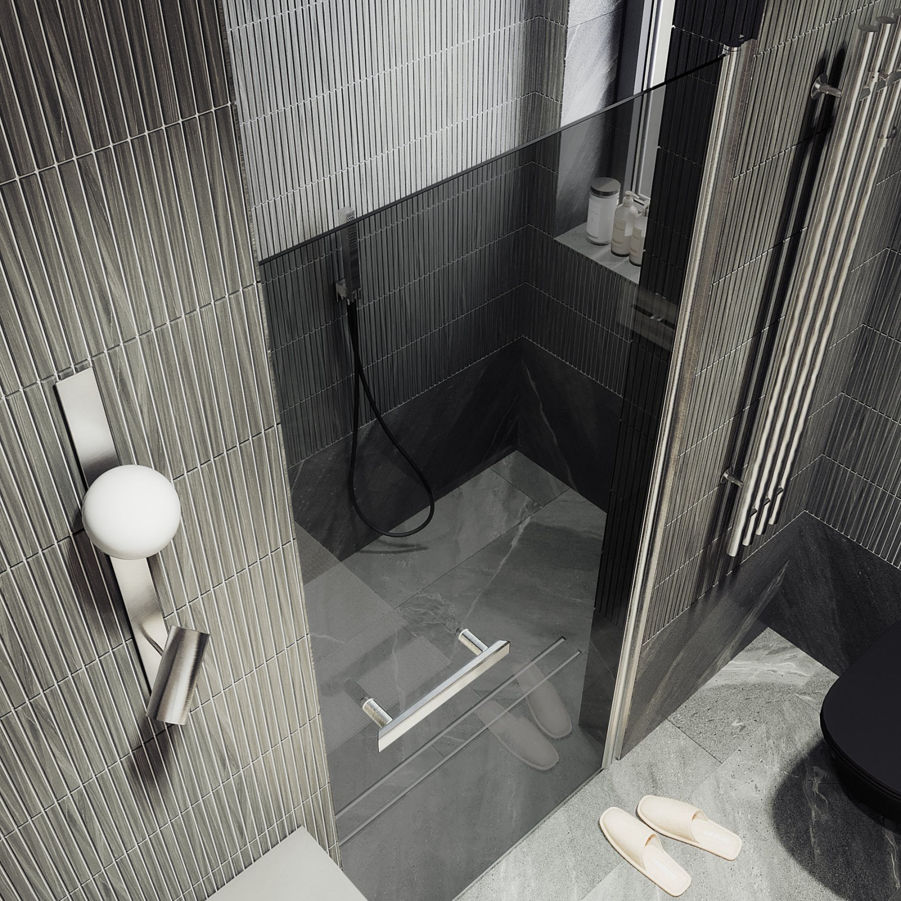 Стеклянная душевая дверь на монопетле является стильным и функциональным аксессуаром для ванной комнаты. Монопетля обеспечивает плавное и бесшумное открывание и закрывание двери. Закаленное стекло, из которого изготовлена дверь, обладает высокой прочностью и устойчивостью к механическим повреждениям и воздействию влаги. Закаленное стекло, цвет графит, толщина 8 мм 1950х845 мм - 1 шт.