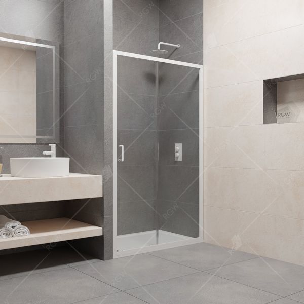 Душевая дверь раздвижная RGW PA-14. Ручка скоба из цинкового сплава, двойные верхние ролики. двойные отстегивающиеся нижние ролики, крышки верхнего профиля. Трап или поддон приобретается отдельно.Душевая дверь RGW Passage PA-14W 120x195 профиль белый незаменимый элемент любой ванной комнаты от миниатюрного санузла в многоквартирной высотке, до огромного помещения в загородном доме. Внутри ниши за душевой дверью можно разместить качественную сантехнику на ваш выбор, установить современную душевую стойку или встроить душевую систему скрытого монтажа, а также повесить удобные полочки для банных принадлежностей.Душевая дверь RGW Passage прямоугольной формой размером 120 см высотой 195 см создаст значительное пространство внутри, для вашего комфорта. Цвет профиля RGW Passage - хром, белый, это бесподобный вариант для современного интерьера. Конструкция дверей 41081412-15 раздвижная, не требует дополнительного пространства для открывания и позволяет оптимизировать пространство ванной комнаты. Стекло у душевой двери RGW 41081412-15 представлено в прозрачном исполнении, толщиной 6 мм, отлично будет гармонировать с любым дизайном интерьера ванной. Универсальность ориентации RGW Passage позволяет не задумываться о, том в какой именно угол нужно устанавливать, и даже при изменении положения других элементов сантехники, можно без проблем изменить ориентацию. RGW Passage 41081412-15 спроектирован дизайнерам с четким соблюдением всех серьезных элементов современного стиля. Наличие покрытия анти-капля надежно защитит стекло от налета, подтёков и других загрязнений, а так же сохранит чистоту стекла и эстетичный внешний вид.Все душевые ограждения RGW, производятся с жестким соблюдением современных стандартов качества и применение материалов безопасных для здоровья, благодаря тому, что родна производства Германия. Душевая дверь RGW Passage PA-14W 120x195 профиль белый гармонично вольется в ваш интерьер и подарит ему дополнительные современные элементы.