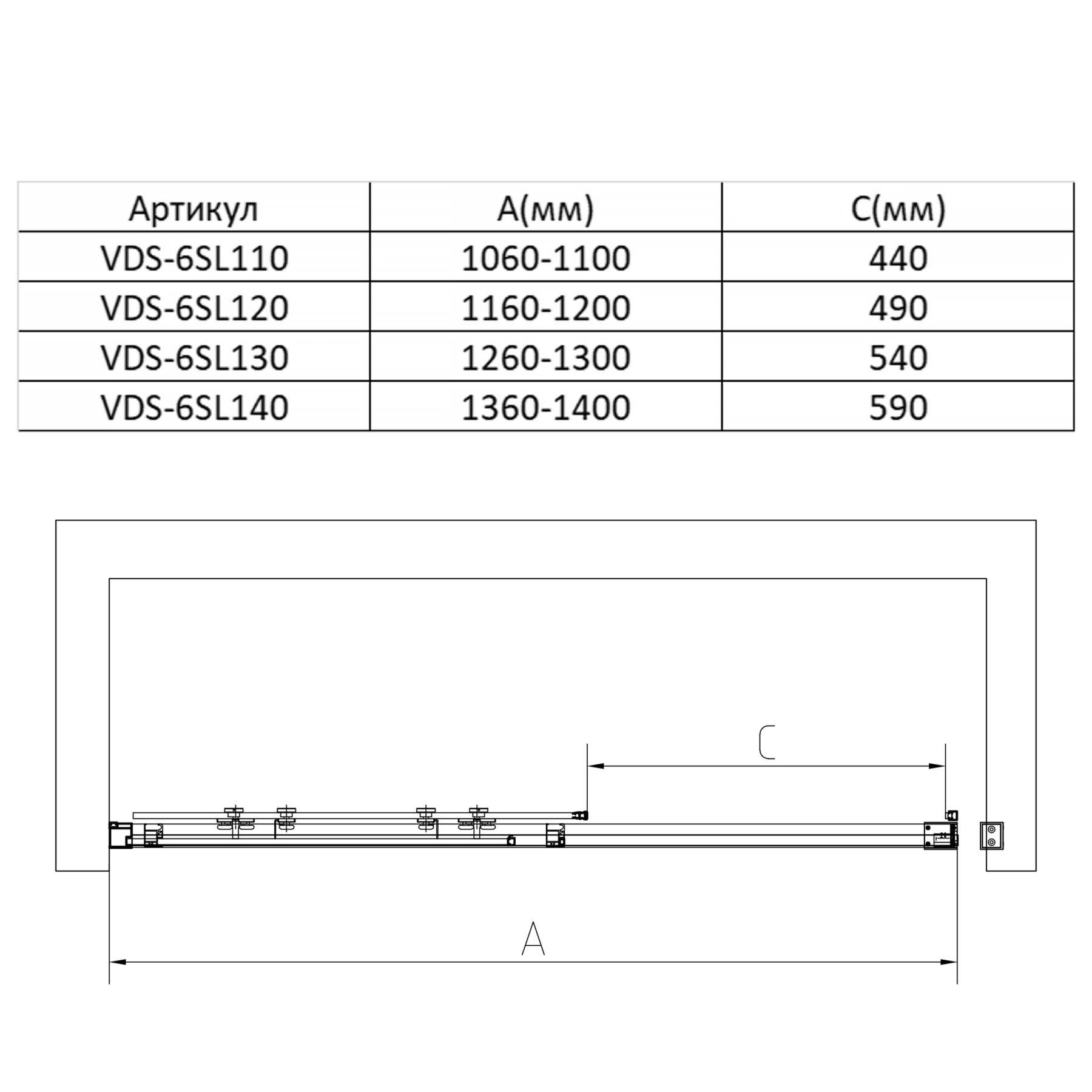Душевая дверь Vincea Slim 8mm VDS-6SL110CLB, 1100, черный, стекло прозрачное купить