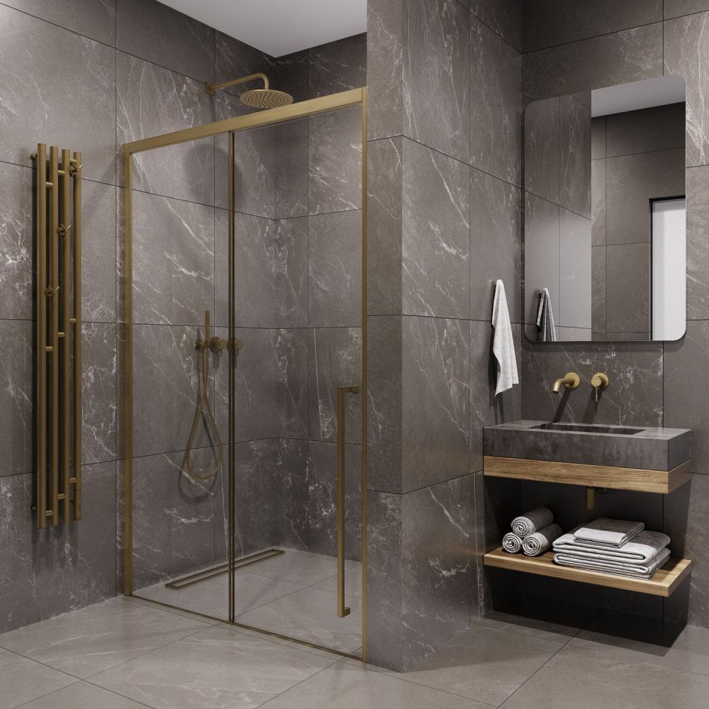Душевая дверь в нишу Timo T55R 150 см правая золото матовое купить