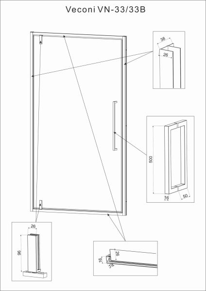 Душевая дверь Veconi Vianno VN-33, 900x1950, хром, стекло прозрачное