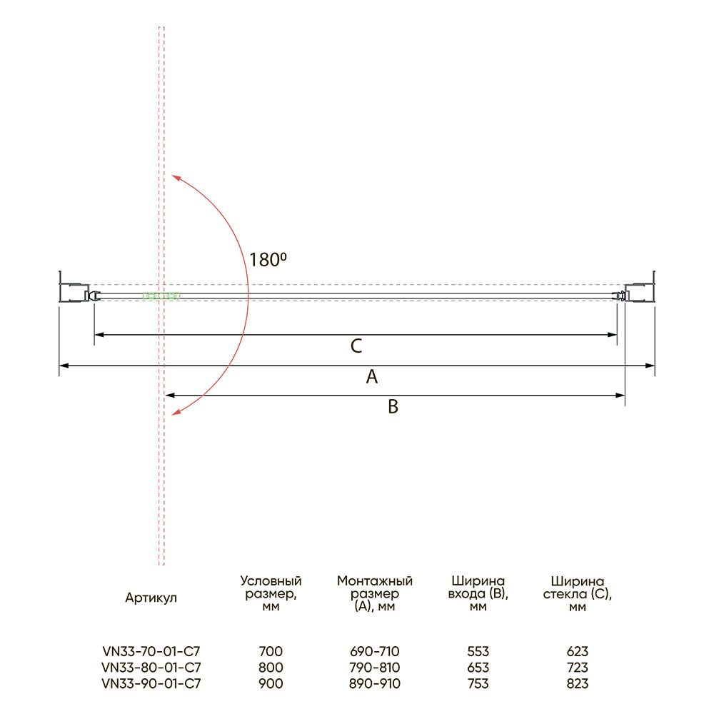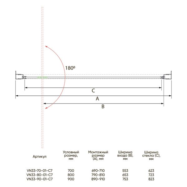 Душевая дверь Veconi Vianno VN-33R, 700x1950, хром, стекло дождь купить