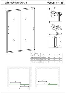 Душевая дверь Veconi Vianno VN-46BC, 1000x1950, Никель брашинг стекло прозрачное купить