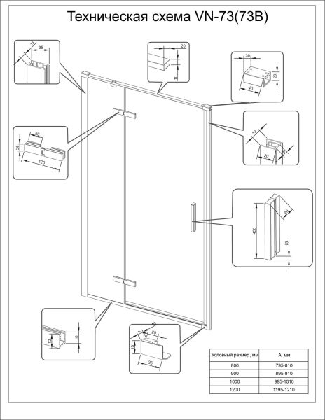 Душевая дверь Veconi Vianno VN-73B, 800x1950, Черный, стекло прозрачное
