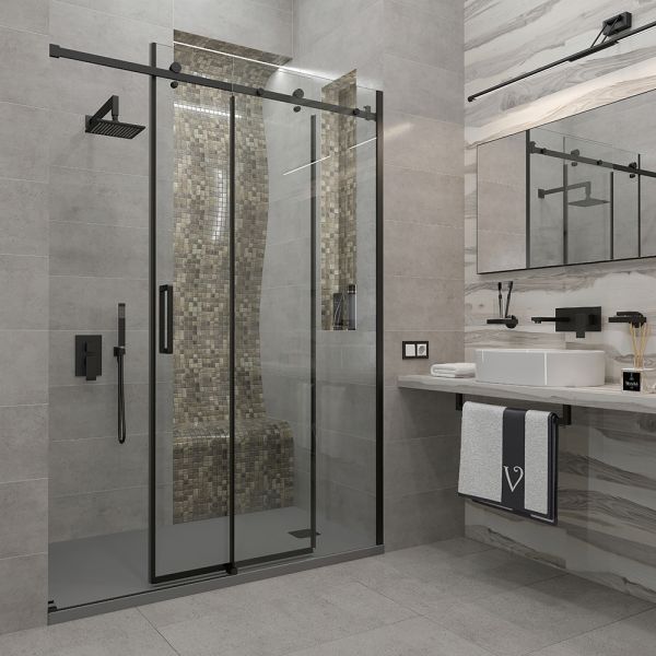 Душевая дверь Veconi Vianno VN-74B, 1300x1950, черный, стекло прозрачное