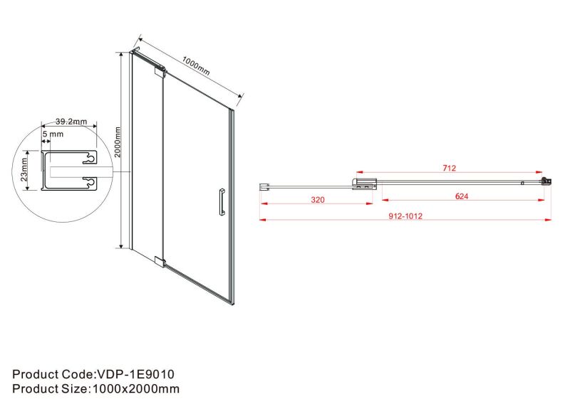 900/1000×2000Регулировочные размеры: