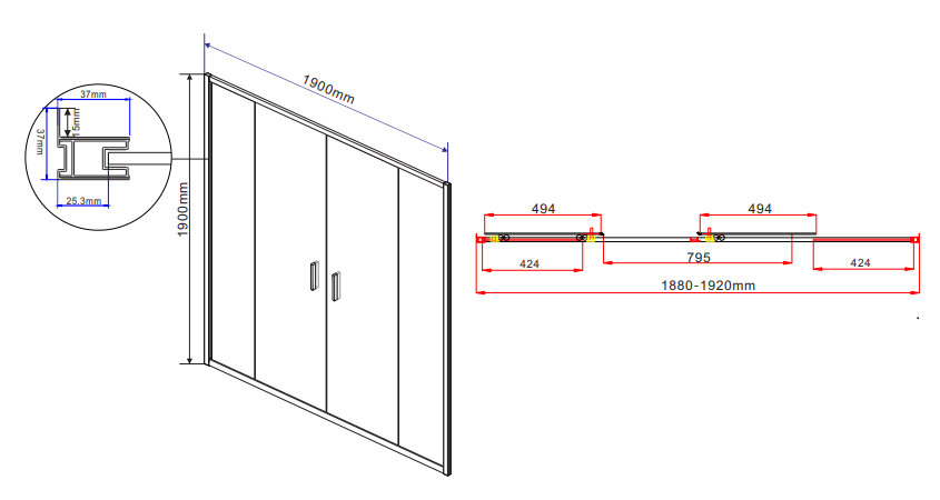 Душевая дверь Vincea Garda VDS-1G2 190 см раздвижная, стекло прозрачное, хром, VDS-1G2190CLДушевая дверь
