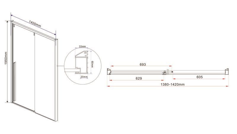 Душевая дверь Vincea Lugano VDS-1L140CL-1, 140 см, раздвижная, стекло прозрачное, хромОсновные характеристики:Душевая дверь, длинная ручка