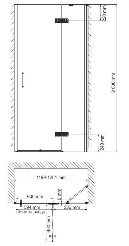 Душевая дверь Wasserkraft Aller Black 10H05RBLACK MATT 120x200 правая купить
