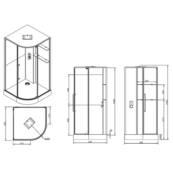 Размер (ШхВхД): 995x2200x995 мм.