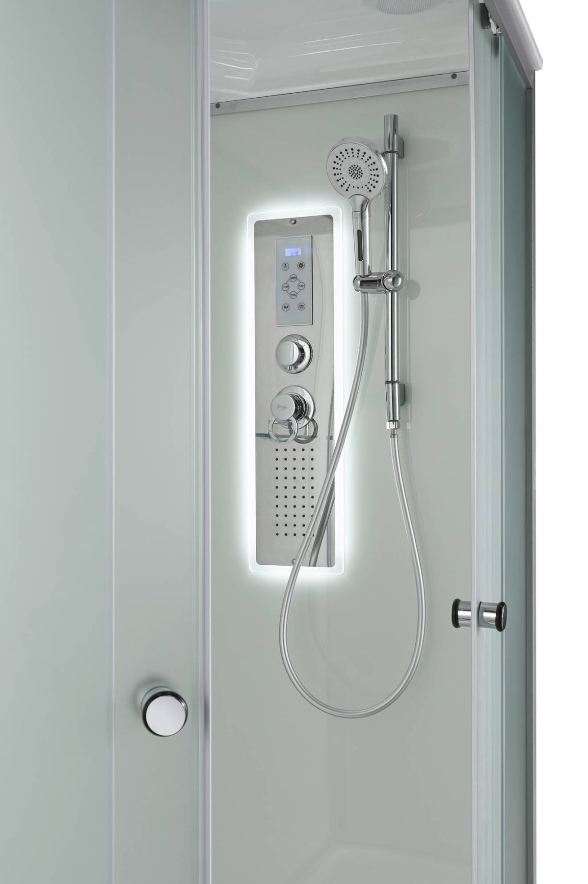 Стильная душевая кабина AvaCan D 2012R LED сочетает в себе высокую функциональность, практичность и надежность. При изготовлении применяется безопасное закаленное стекло толщиной 4 мм (матовое), надежно фиксируемое алюминиевым профилем. Сборка без силикона (увеличивает срок службы), внутренняя сборка(облегчает установку и ревизию; позволяет установить в ограниченном пространстве), смеситель резьбовой (без хомутов). Съемный экран поддона (позволяет осуществлять ревизию сифона). Цвет профиля матовый хром. Двойные металлические ролики дверей (увеличивают срок службы).В комплекте : душевая штанга, полочка, тропический (верхний) душ, арома-лейка с витамином С (картридж съемный), сенсорный пульт (блютуз, радио, LED подсветка в крыше и в центральной панели, вентелятор.)