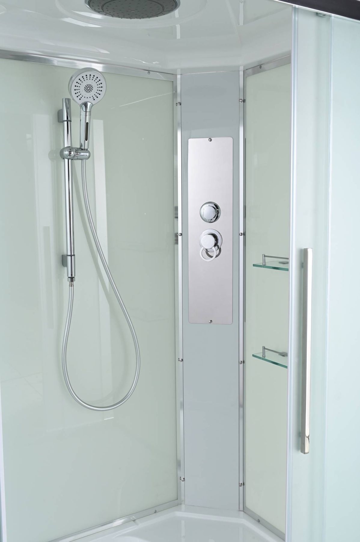 Стильная душевая кабина AvaCan сочетает в себе высокую функциональность, практичность и надежность. При изготовлении применяется безопасное закаленное стекло, надежно фиксируемое алюминиевым профилем. Профиль сделан из алюминия повышенной прочности. Сборка без силикона (увеличивает срок службы, защищает от протечек), внутренняя сборка (облегчает установку и ревизию; позволяет установить в ограниченном пространстве и обойтись без демонтажа других сантехнических приборов), смеситель резьбовой (без хомутов). Съемный экран поддона (позволяет осуществлять подключение и ревизию сифона).Двойные металлические ролики дверей (распределение нагрузки на два ролика, увеличивают срок службы). Душевая штанга(позволяет регулировать по высоте ручную лейку), ручная арома-лейка с витамином С (картридж в комплекте,есть возможность замены или удаления картриджа), полочки(из стекла, с ограничителем), сифон с гидрозатвором.