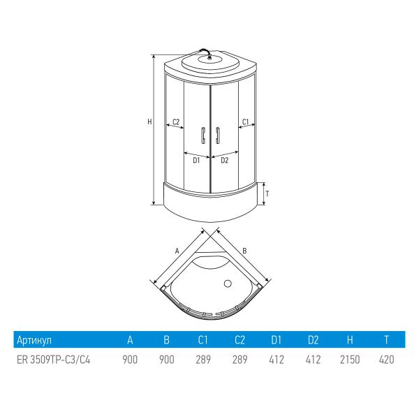 Душевая кабина Erlit Comfort ER3509TP-C3-RUS (900x900x2150)