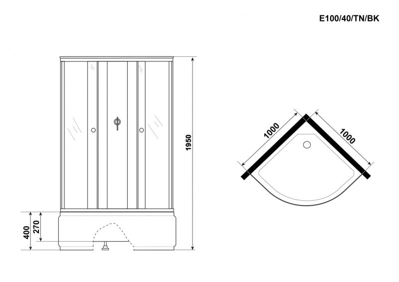 Душевая кабина Niagara Eco E100/40/TN/BK Без крыши