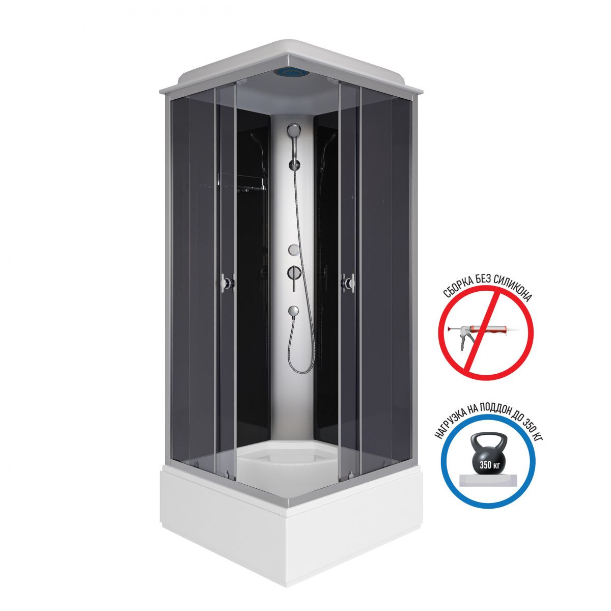 Душевая кабина Niagara Eco E90/26Q/TN 4 местаБезсиликоновая душевая кабина Niagara Eco E90/26Q/TN тонированная